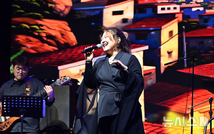 [화성=뉴시스] 김종택 기자 = '2025 화성재즈페스티벌'이 열린 1일 오후 경기 화성시 향남 도원체육공원에 마련된 무대에서 소울 음악의 보컬리스트 바키가 열띤 공연을 펼치고 있다. 2025.11.01. [email protected]