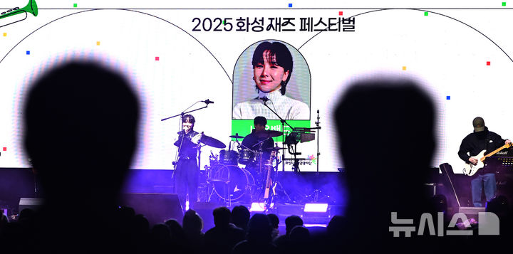 [화성=뉴시스] 김종택 기자 = '2025 화성재즈페스티벌'이 열린 1일 오후 경기 화성시 향남 도원체육공원에 마련된 무대에서 네온밴드가 열띤 공연을 펼치고 있다. 2025.11.01. [email protected]