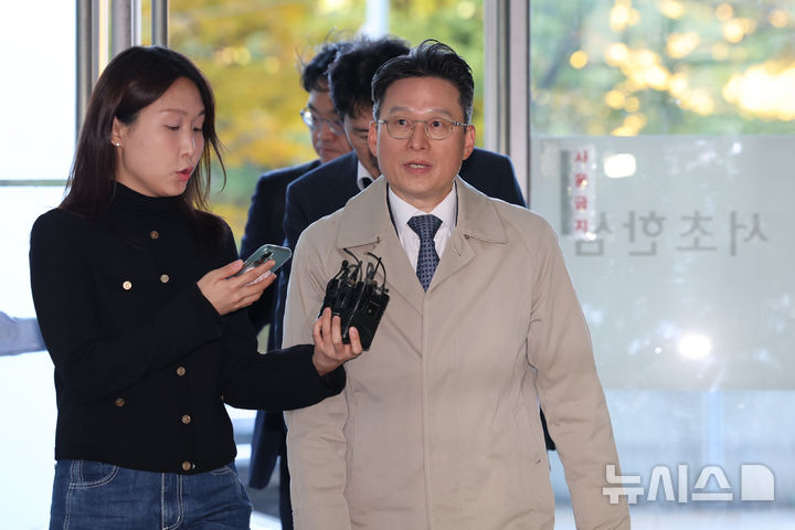 [서울=뉴시스] 권창회 기자 = 김선규 전 공수처 수사1부장검사가 2일 서울 서초구 이명현 순직해병 특별검사팀 사무실에서 피의자 조사를 위해 출석하고 있다. 2025.11.02. [email protected]