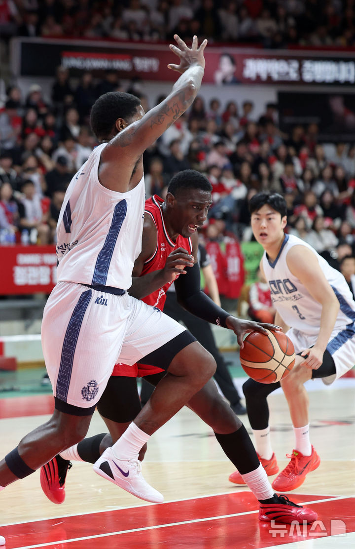 [안양=뉴시스] 김선웅 기자 = 2일 경기 안양시 정관장 아레나에서 열린 2025-2026 프로농구 안양 정관장 vs 고양 소노의 경기, 조니 오브라이언트가 돌파를 시도하고 있다. 2025.11.02. [email protected]