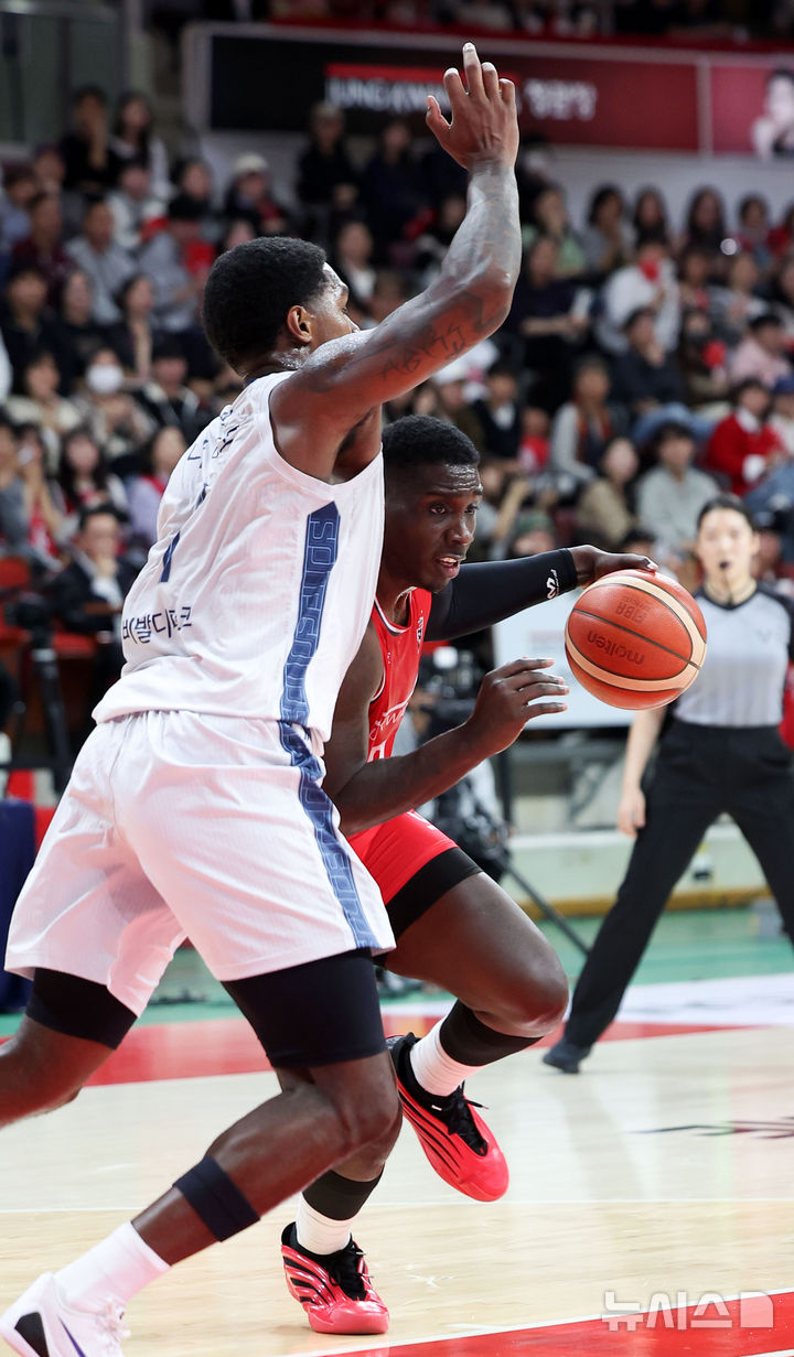 [안양=뉴시스] 김선웅 기자 = 2일 경기 안양시 정관장 아레나에서 열린 2025-2026 프로농구 안양 정관장 vs 고양 소노의 경기, 조니 오브라이언트가 돌파를 시도하고 있다. 2025.11.02. [email protected]