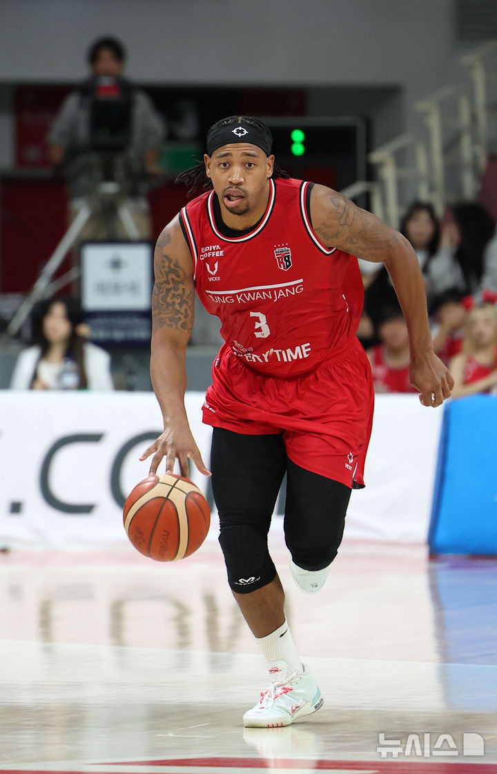 [안양=뉴시스] 김선웅 기자 = 2일 경기 안양시 정관장 아레나에서 열린 2025-2026 프로농구 안양 정관장 vs 고양 소노의 경기, 정관장 브라이스 워싱턴이 드리블하고 있다. 2025.11.02. [email protected]