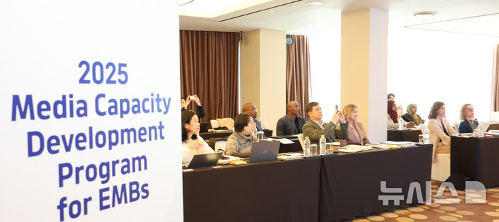 [인천=뉴시스] 전진환 기자 =  3일 오전 인천 연수구 쉐라톤그랜드 호텔에서 진행된 2025년 가짜뉴스 대처를 위한 선거 미디어 역량개발 연수에서 대만, 카자흐스탄, 남아프리카 공화국 등 각국 선거관리기관 교육 및 미디어 담당자들이 장인식 세계선거기관협의회(A-WEB) 사무총장의 인사말을 경청하고 있다. 2025.11.03. [email protected]
