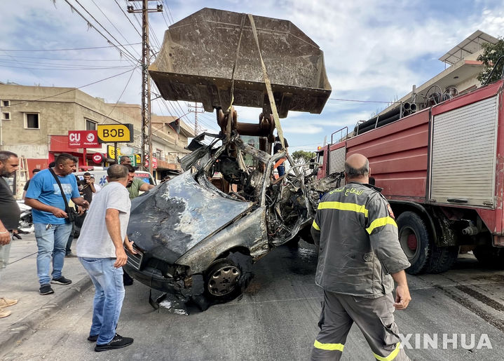 [알 두에이르=신화/뉴시스] 3일(현지 시간) 레바논 남부 알 두에이르 마을에서 구조대가 이스라엘의 공습으로 파괴된 차량 잔해를 치우고 있다. 현지 당국은 이 공격으로 헤즈볼라 대원 1명이 숨지고 7명이 부상했다고 밝혔다. 2025.11.04.