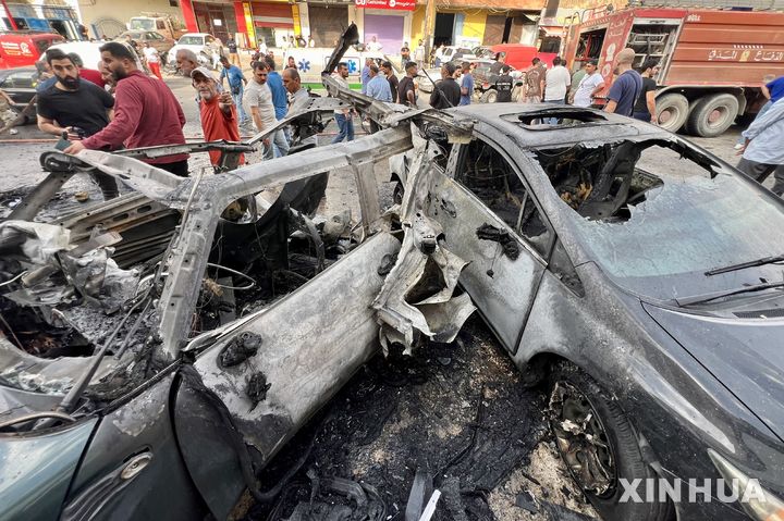 [알 두에이르=신화/뉴시스] 3일(현지 시간) 레바논 남부 알 두에이르에서 주민들이 이스라엘의 공습으로 파괴된 차량 잔해를 살펴보고 있다. 현지 당국은 이 공격으로 헤즈볼라 대원 1명이 숨지고 7명이 부상했다고 밝혔다. 2025.11.04.