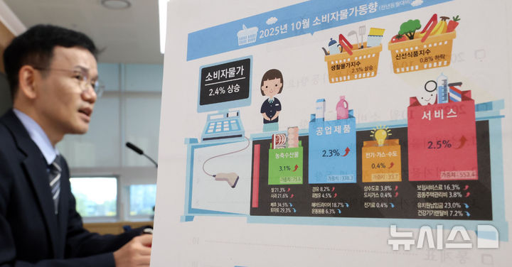 [세종=뉴시스] 강종민 기자 = 이두원 국가데이터처 경제동향통계심의관이 4일 세종시 정부세종청사에서 2025년 10월 소비자물가동향을 발표하고 있다.