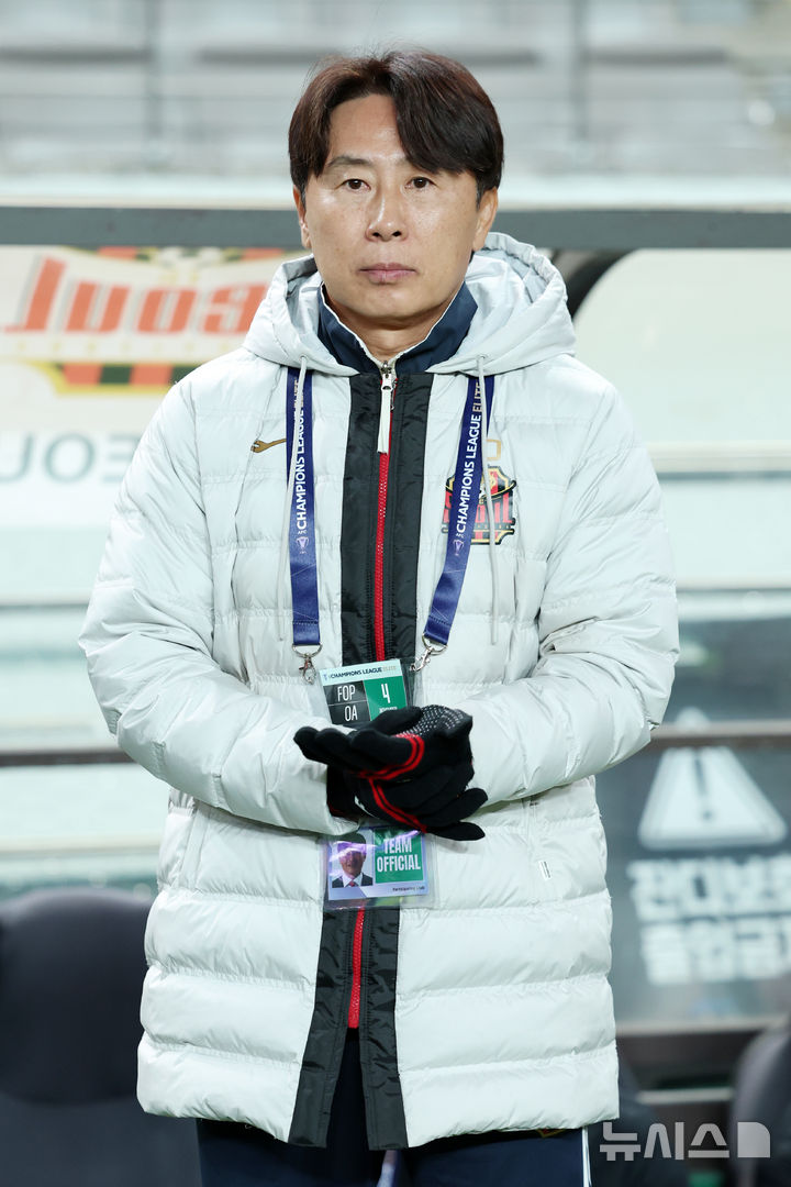 [서울=뉴시스] 조성우 기자 = 4일 오후 서울 마포구 서울월드컵경기장에서 열린 2025-2026 아시아축구연맹(AFC) 챔피언스리그 엘리트(ACLE) 리그 스테이지 4차전 FC서울과 청두 룽청의 경기, FC서울 김기동 감독이 경기 시작을 기다리며 그라운드를 응시하고 있다. 2025.11.04. [email protected]