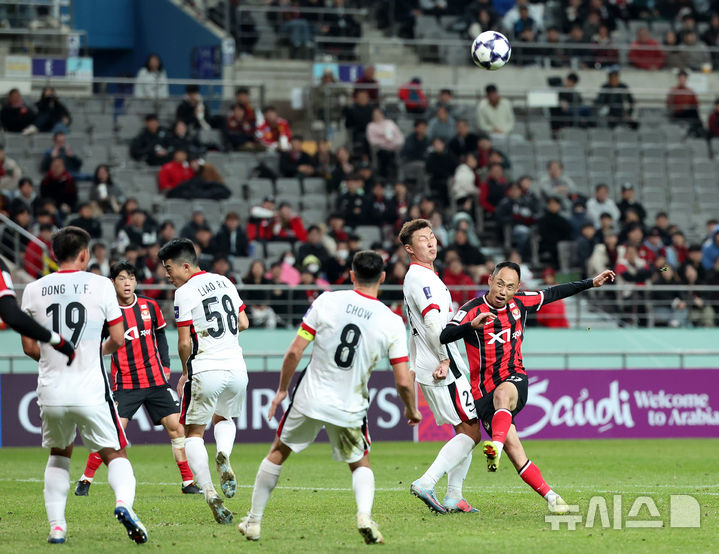 [서울=뉴시스] 조성우 기자 = 4일 오후 서울 마포구 서울월드컵경기장에서 열린 2025-2026 아시아축구연맹(AFC) 챔피언스리그 엘리트(ACLE) 리그 스테이지 4차전 FC서울과 청두 룽청의 경기 후반전, FC서울 문선민의 슛이 높이 뜨고 있다. 2025.11.04. [email protected]