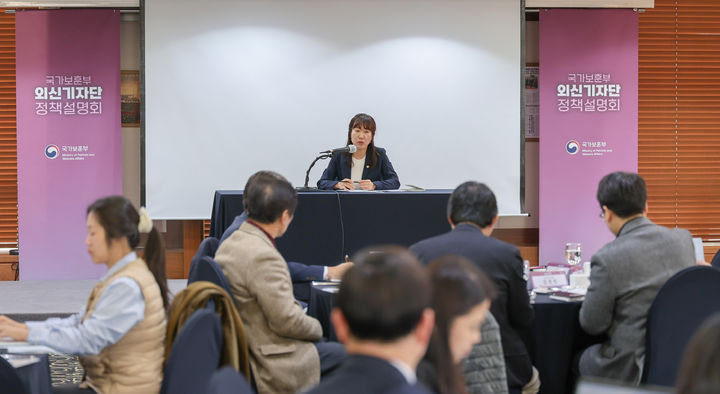 [서울=뉴시스] 강윤진 국가보훈부 차관이 5일 서울 중구 프레스센터에서 열린 국가보훈부 외신기자단 정책설명회에 참석해 발언하고 있다. (사진=국가보훈부 제공) 2025.11.05. [email protected] *재판매 및 DB 금지