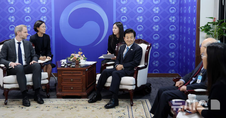 [서울=뉴시스] 추상철 기자 = 정동영 통일부 장관이 5일 오후 서울 종로구 정부서울청사에서 에버트 재단 스톡홀름 국제평화문제연구소(SIPRI) 방한단을 접견하고 있다. 2025.11.05. [email protected]