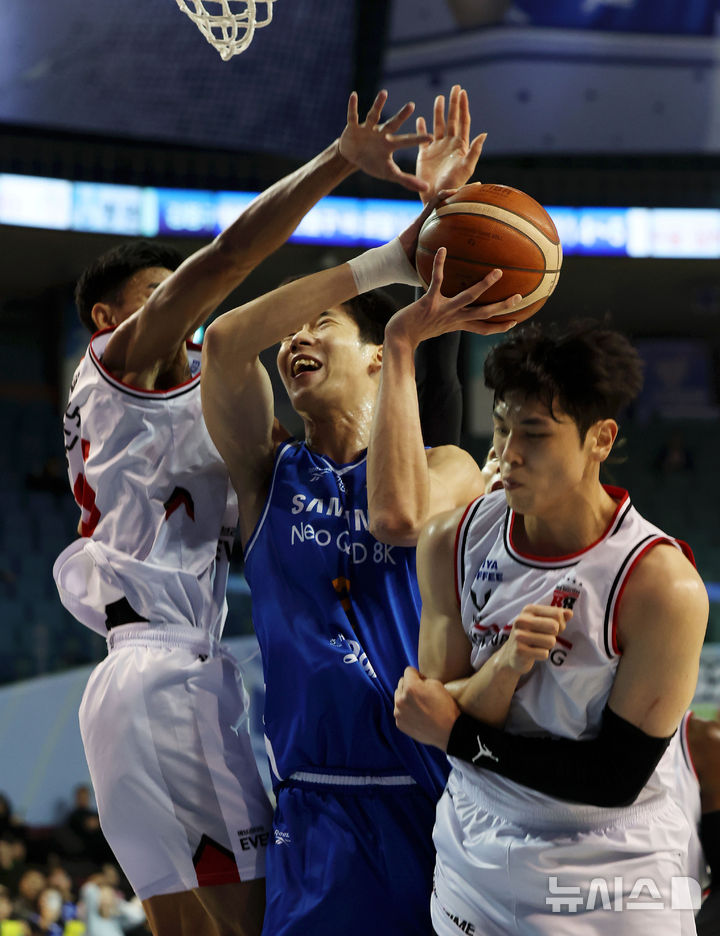[서울=뉴시스] 홍효식 기자 = 5일 서울 송파구 잠실실내체육관에서 열린 2025-2026 KBL 프로농구 서울 삼성과 안양 정관장의 경기, 삼성 이원석이 슛을 시도하고 있다. 2025.11.05. [email protected]