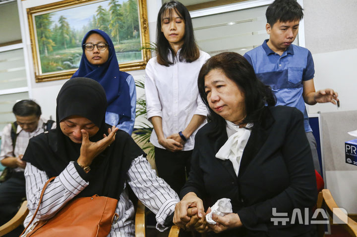 [쿠알라룸푸르(말레이시아)=AP/뉴시스]실종된 기돌교 목사 레이몬드 코의 아내 수산나 리우 소우 요크(앞줄 오른쪽)와 무슬림 활동가 암리 체 마트의 아내 노르하야티 모드 아리피냐앞줄 왼쪽)가 2019년 4월3일 쿠알라룸푸르 국가인권위원회 사무실에서 남편들의 실종사건에 대한 공개 조사 결과 발표를 듣고 있다. 말레이시아 고등법원이 5일 국제적 관심을 끌었던 수년 전 말레이시아 기독교 목사와 무슬림 활동가의 실종 사건에 대한 재판에서 이들의 강제 실종은 정부와 경찰에 책임이 있는 납치라고 판결, 이들의 아내들에게 획기적 승리를 안겼다. 2025.11.06.