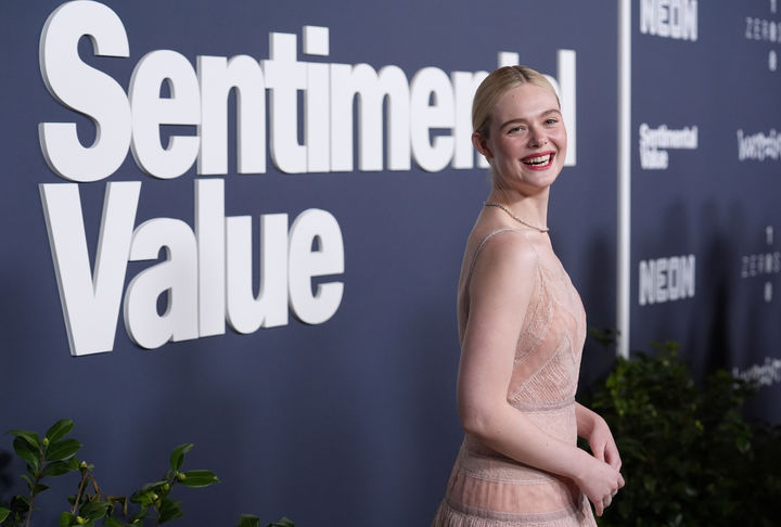[로스앤젤레스=AP/뉴시스] 배우 엘르 패닝이 5일(현지 시간) 미 캘리포니아주 로스앤젤레스의 DGA 극장에서 열린 영화 ‘센티멘탈 밸류'(Sentimental Value) 시사회에 참석해 포토타임을 갖고 있다. 2025.11.06.