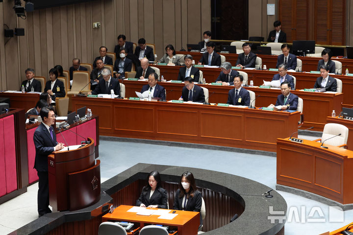 [서울=뉴시스] 김명년 기자 = 김민석 국무총리가 6일 서울 여의도 국회 예산결산특별위원회 회의장에서 열린 예결위 첫 전체회의에 참석해 인사말을 하고 있다. 2025.11.06. [email protected]