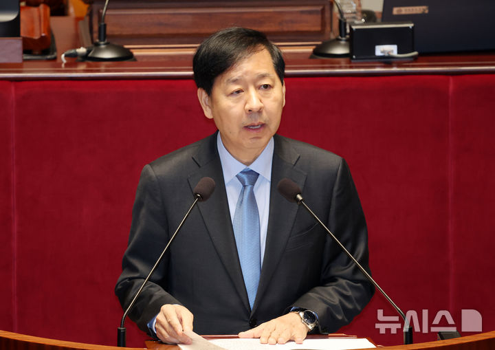 [서울=뉴시스] 김명년 기자 = 구윤철 경제부총리 겸 기획재정부 장관이 6일 서울 여의도 국회 예산결산특별위원회 회의장에서 열린 예결위 첫 전체회의에서 2026년도 정부예산 제안설명을 하고 있다. 2025.11.06. [email protected]