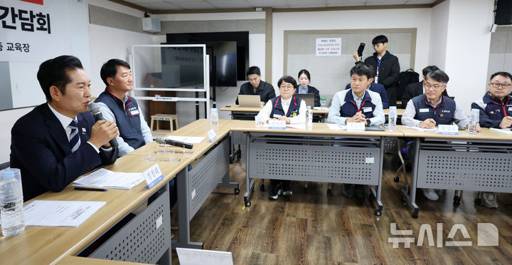 [서울=뉴시스] 이영환 기자 = 정청래 더불어민주당 대표가 6일 오전 서울 중구 민주노총에서 열린 민주노총-민주당 간담회에서 발언을 하고 있다. 2025.11.06. [email protected]