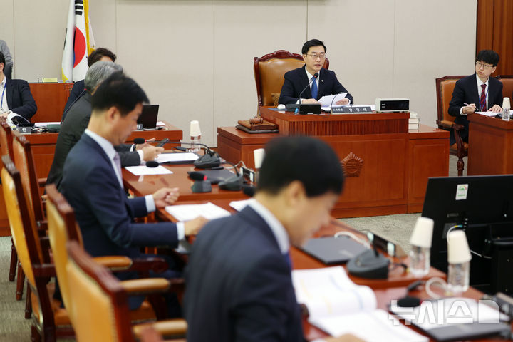 [서울=뉴시스] 김명년 기자 = 7일 오전 서울 여의도 국회에서 열린 법제사법위원회 예산결산기금심사소위원회에서 장경태 소위원장이 발언하고 있다. 2025.11.07. [email protected]