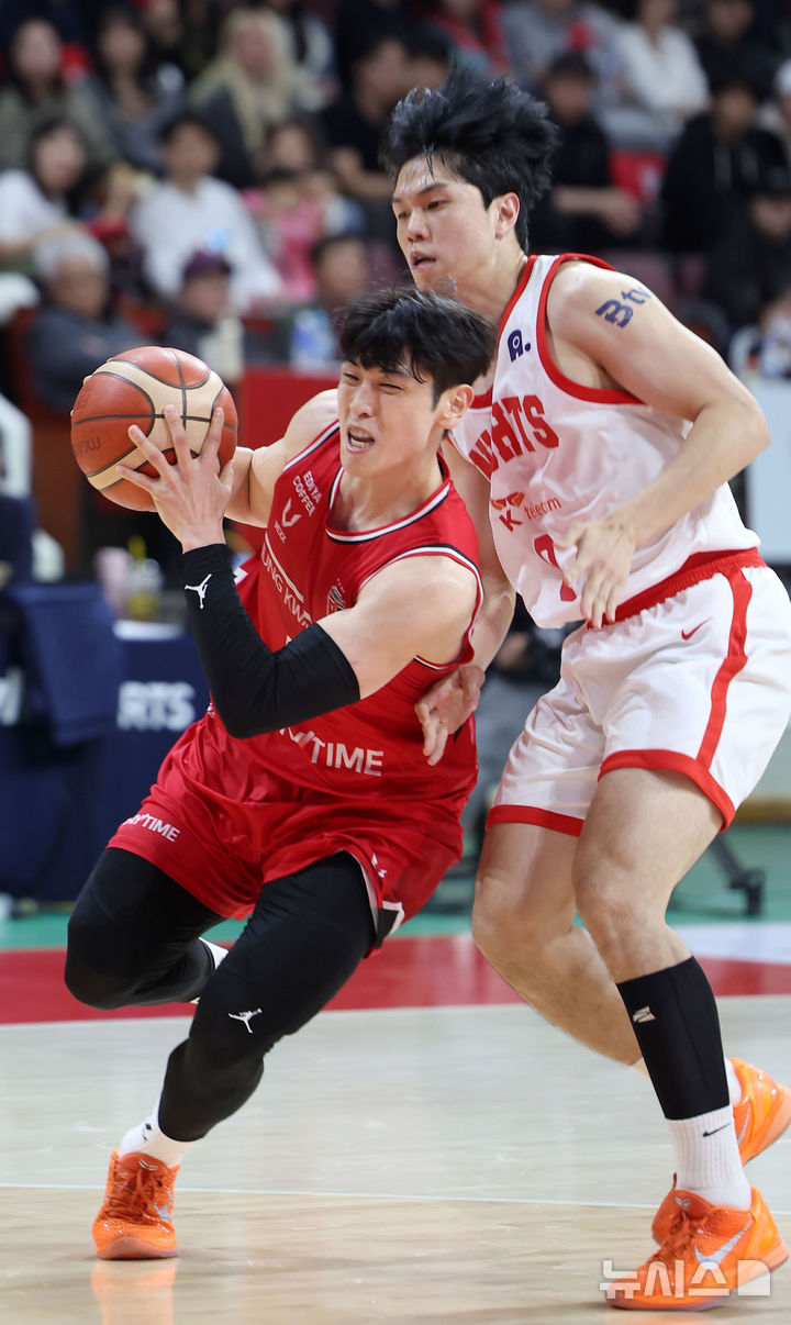 [안양=뉴시스] 김선웅 기자 = 7일 경기 안양시 정관장 아레나에서 열린 2025-2026 프로농구 안양 정관장 vs 서울 SK의 경기, 정관장 변준형이 돌파를 시도하고 있다. 2025.11.07. [email protected]