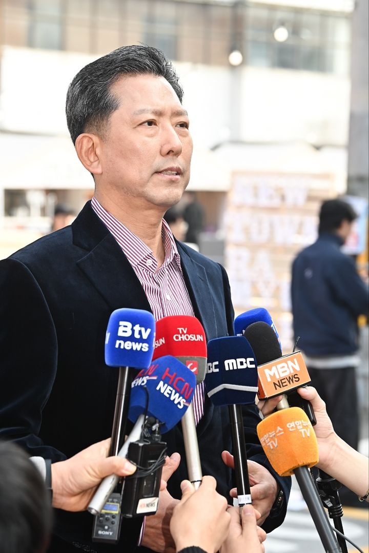 [구미=뉴시스] 박홍식 기자 = 김장호 경북 구미시장이 7일 오후 구미역 일원에서 열린 '2025 구미라면축제' 개막식에 앞서 기자들과 인터뷰하고 있다. 오는 9일까지 열리는 올해 축제는 셰프들이 갓 튀긴 25가지 창의적 요리를 맛볼 수 있다. (사진=구미시 제공) 2025.11.08 [email protected]