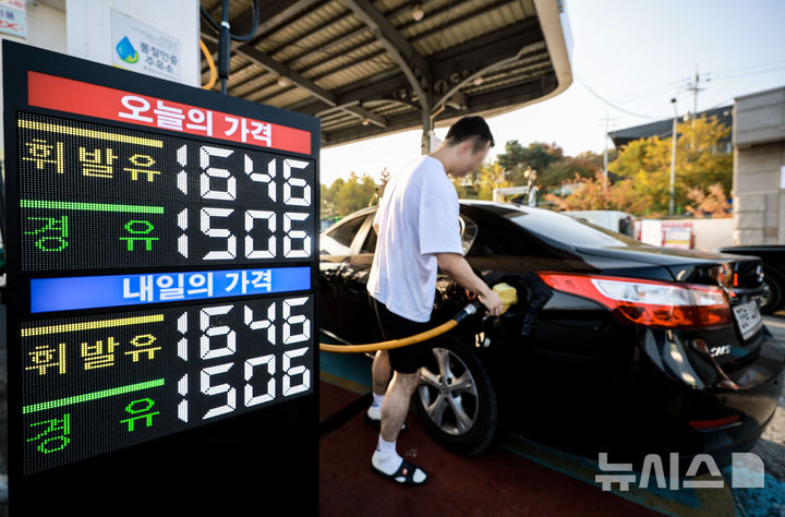 [서울=뉴시스] 정병혁 기자 = 9일 서울 서초구 만남의광장 주유소에서 시민들이 주유를 하고 있다. 전국 주유소 휘발유 가격이 2주 연속 상승했다. 11월 첫째 주 휘발유 평균 판매가격은 리터(L)당 1685.6원으로 전주 대비 19.1원 상승했다. 경유 판매가격은 26.5원 상승한 1568.2원이다. 휘발유와 경유 판매가격은 2주 연속 상승 중이다.2025.11.09. [email protected]
