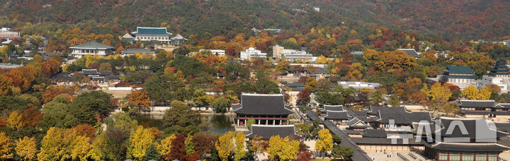 [서울=뉴시스] 추상철 기자 = 완연한 가을 날씨를 보인 9일 오후 서울 종로구 경복궁 주변이 울긋불긋한 단풍으로 물들고 있다. 2025.11.09. [email protected]
