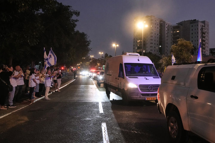 [텔아비브=AP/뉴시스] 가자지구에서 이스라엘로 인도된 관을 실은 차량이 9일(현지 시간) 이스라엘 텔아비브의 아부 카비르 법의학 연구소에 도착하고 있다. 하마스는 2014년 가자지구에서 전사한 이스라엘군인 하다르 골딘 중위의 시신을 송환했으며 이스라엘은 유전자 정보 분석으로 그의 신원을 확인했다. 골딘 중위는 2014년 8월 1일 가자지구 라파에서 하마스와 교전 중 전사했다. 2025.11.10.