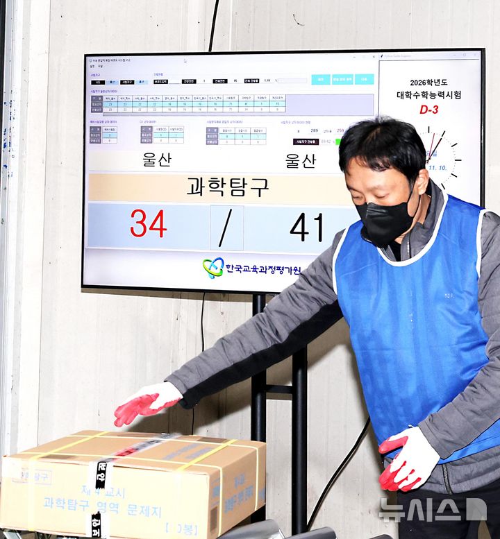 [세종=뉴시스] 강종민 기자 = 2026학년도 대학수학능력시험을 사흘 앞둔 10일 오전 세종시의 한 인쇄공장에서 관계자들이 수능 문제지와 답안지를 전국 시도 교육청으로 배부하기 위해 차량으로 옮기고 있다. (공동취재) 2025.11.10. [email protected]
