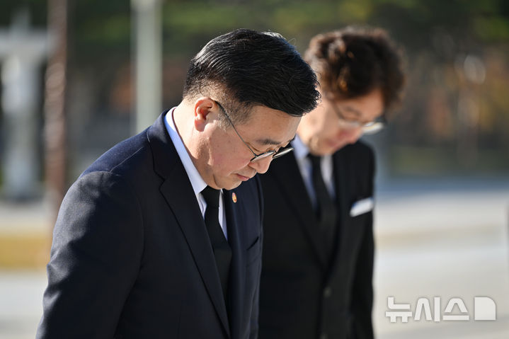 [광주=뉴시스] 이영주 기자 = 윤호중(가운데) 행정안전부 장관이 10일 오전 광주 북구 운정동 국립5·18민주묘지를 찾아 참배하고 있다. 2025.11.10. [email protected]
