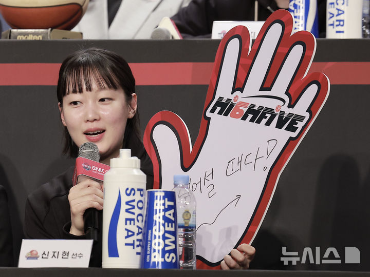 [서울=뉴시스] 정병혁 기자 = 10일 서울 강서구 메이필드호텔에서 열린 BNK 금융 2025-2026 여자프로농구 개막 미디어데이에서 신한은행 신지현이 각오를 밝히고 있다. 2025.11.10. [email protected]
