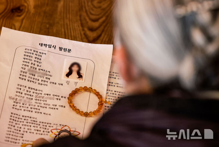 [서울=뉴시스] 정병혁 기자 = 2026학년도 대학수학능력시험을 이틀 앞둔 11일 서울 종로구 조계사를 찾은 한 신도가 대학입시 발원문을 놓고 기도를 하고 있다. 2025.11.11. [email protected]