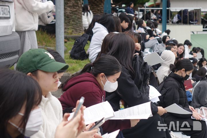 [제주=뉴시스]양영전 기자 = 2026학년도 대학수학능력시험 예비소집일인 12일 오후 제주95지구 제6시험장인 제주중앙여자고등학교에서 수험생들이 유의사항 안내를 듣고 있다. 2025.11.12. [email protected]