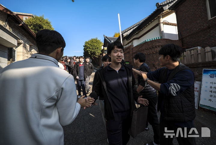 [서울=뉴시스] 정병혁 기자 = 2026학년도 대학수학능력시험을 하루 앞둔 12일 서울 종로구 중앙고등학교에서 수험생들이 선생님과 후배들의 응원을 받으며 학교를 나서고 있다. 2025.11.12. [email protected]