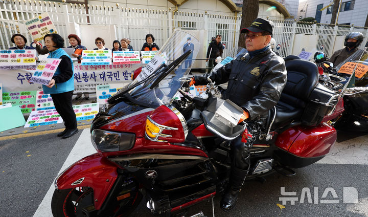 [서울=뉴시스] 추상철 기자 = 2026학년도 대학수학능력시험을 하루 앞둔 12일 오전 서울 종로구 정부서울청사 앞에서 학교를 사랑하는 학부모 모임이 수험생 수송 자원봉사 대국민 발대식'을 열고 있다. 2025.11.12. [email protected]
