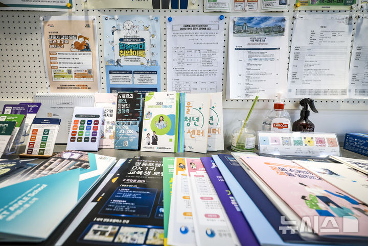 [서울=뉴시스] 정병혁 기자 = 12일 강북구 청년일자리센터에 청년 채용관련 안내문이 놓여 있다.