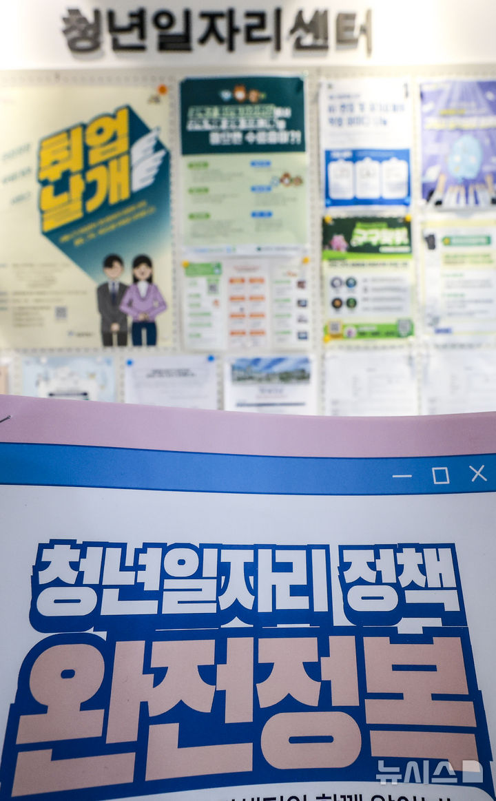 [서울=뉴시스] 정병혁 기자 = 12일 강북구 청년일자리센터에 청년 채용관련 안내문이 놓여 있다.