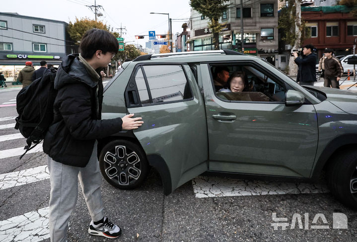 [서울=뉴시스] 정병혁 기자 = 2026학년도 대학수학능력시험이 실시된 13일 서울 용산구 용산고등학교에서 수험생이 부모님의 응원을 받으며 시험장으로 향하고 있다. 2025.11.13. [email protected]