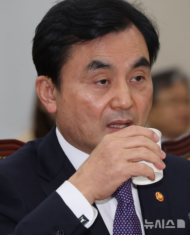 [서울=뉴시스] 김명년 기자 = 안규백 국방부 장관이 13일 오전 서울 여의도 국회에서 열린 국방위원회 전체회의에서 물을 마시고 있다. 2025.11.13. [email protected]