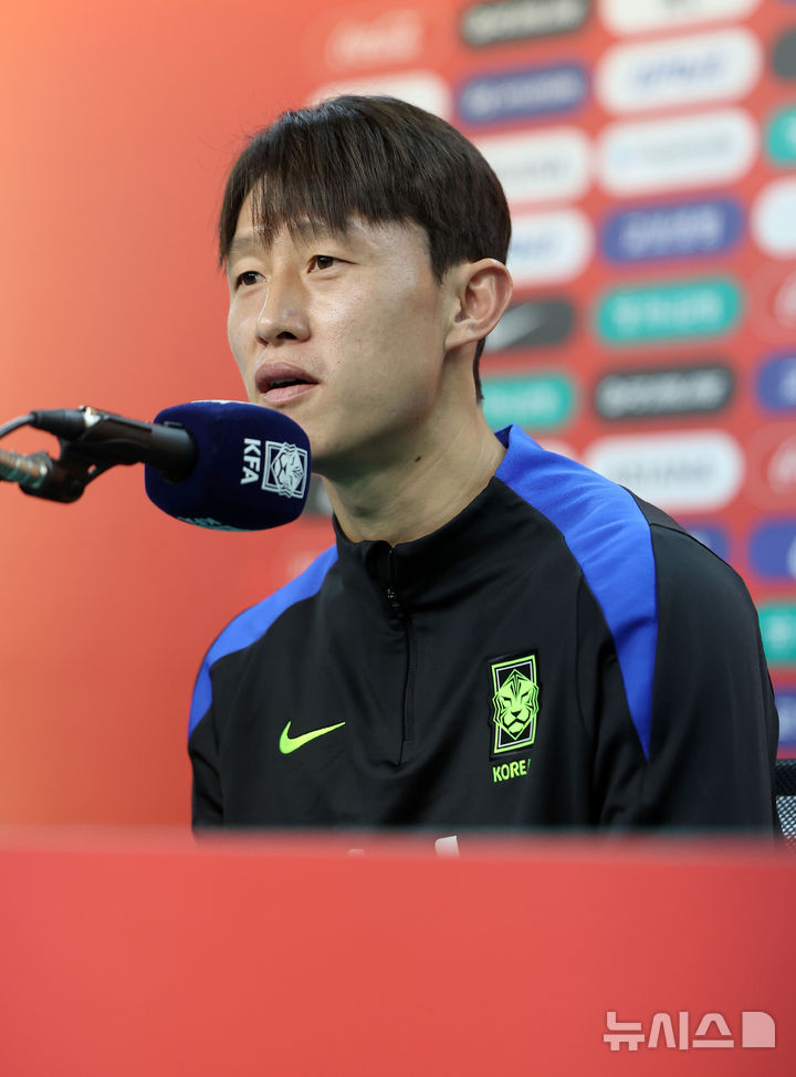[대전=뉴시스] 김선웅 기자 = 볼리비아와 평가전을 앞둔 대한민국 축구대표팀 이재성이 13일 대전 월드컵경기장에서 기자회견을 하고 있다. 2025.11.13. [email protected]