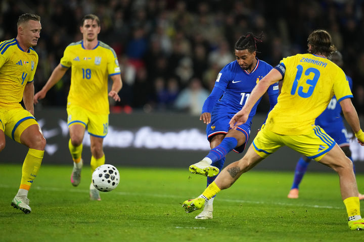 [파리=AP/뉴시스] 프랑스의 마이클 올리세(11)가 13일(현지 시간) 프랑스 파리에서 열린 2026 국제축구연맹(FIFA) 북중미월드컵 유럽 예선 D조 5차전 우크라이나와 경기 후반 21분 추가 골을 넣고 있다. 킬리안 음바페가 멀티 골로 통산 400골을 기록한 프랑스는 우크라이나를 4-0으로 완파하고 본선 진출을 확정했다. 2025.11.14.
