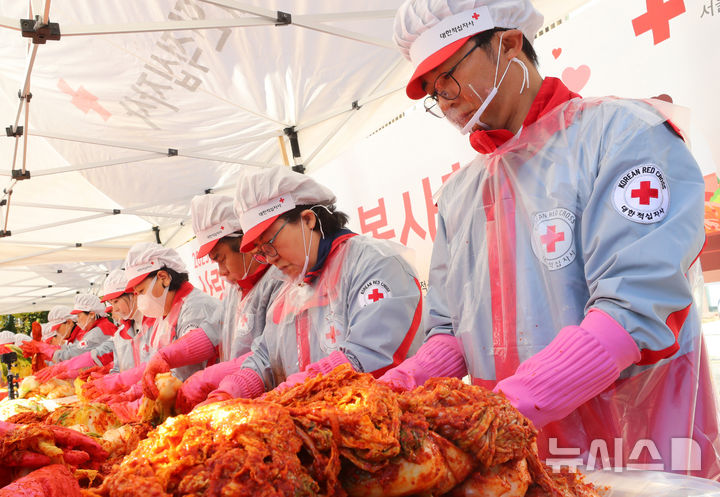 [서울=뉴시스] 김혜진 기자 = 배우 안재욱이 14일 서울 노원구 대한적십자사 서울지사 북부봉사관에서 봉사단원들과 함께 2025 사랑의 김장나눔 봉사활동을 하고 있다. 2025.11.14. [email protected]