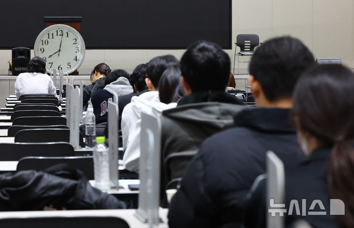 [서울=뉴시스] 황준선 기자 = 16일 서울 종로구 성균관대학교 인문사회과학캠퍼스에서 열린 2026학년도 수시모집 논술 시험에 응시한 수험생들이 시험 시작을 기다리고 있다. 2025.11.16. [email protected]
