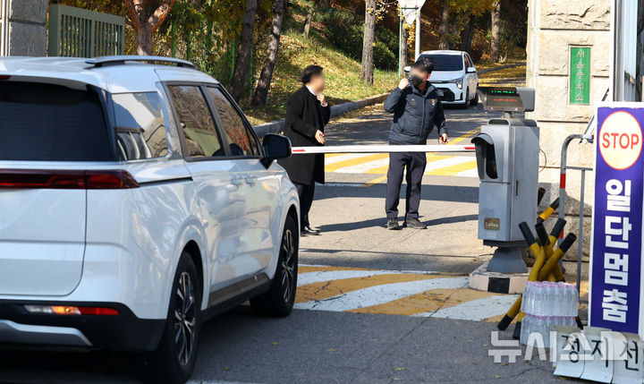 [의왕=뉴시스] 최진석 기자 = 이종섭 전 국방부 장관의 호주 도피 의혹을 수사하는 순직해병 특검팀(특별검사 이명현)의 윤석열 전 대통령 2차 조사일인 16일 경기 의왕시 서울구치소에서 해병특검팀 차량이 출입을 기다리고 있다. 2025.11.16. [email protected]