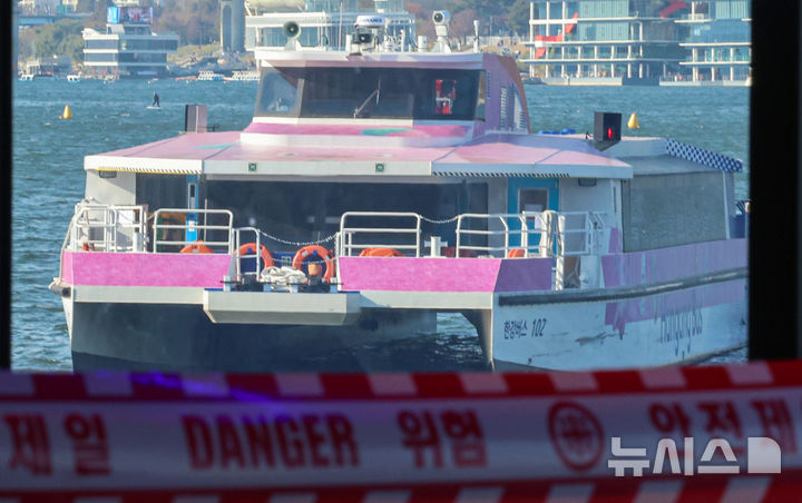 [서울=뉴시스] 권창회 기자 = 16일 서울 송파구 잠실선착장 인근에 한강버스가 운항 중단된 채 멈춰있다. 한강버스는 지난 15일 잠실선착장 인근 강바닥에 걸려 멈춰 일부 구간이 운항 중단됐다. 2025.11.16. [email protected]