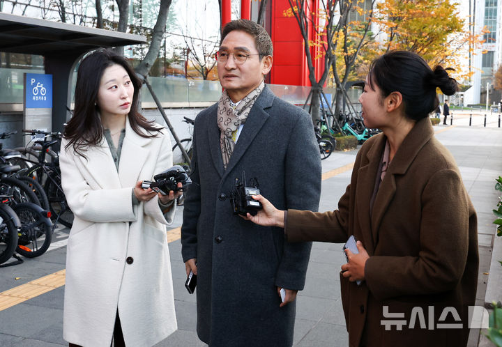 [서울=뉴시스] 최진석 기자 = 관봉권 띠지 폐기 의혹과 쿠팡 퇴직금 불기소 외압 의혹 진상 규명을 위한 특검(상설특별검사)에 임명된 안권섭 변호사가 17일 서울 여의도 사무실로 출근하면 취재진의 질문에 답하고 있다. 2025.11.17. [email protected]