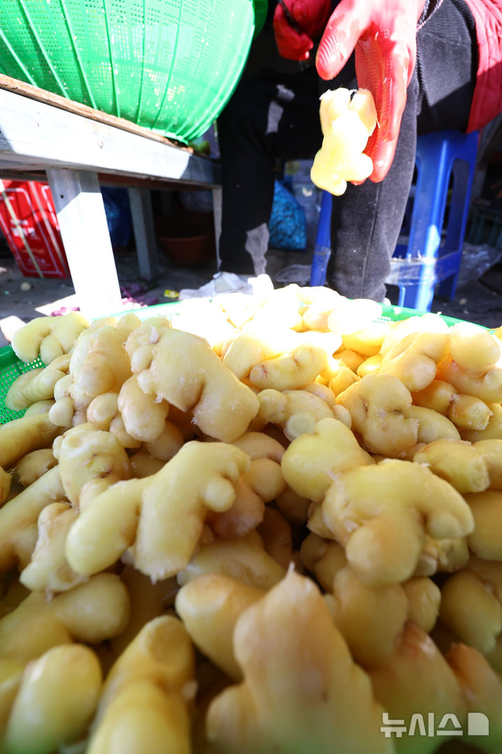 사진은 이날 서울 동대문구 청량리농수산물시장 한 상점에 상인이 다듬고 있는 생강의 모습. 2025.11.17. [email protected]