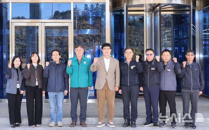 [삼척=뉴시스] 홍춘봉 기자 = 18일 박상수 강원 삼척시장이 한국남부발전 삼척빛드림본부(본부장 임경규)를 방문해 주요시설을 둘러보고 관계자들과 기념촬영을 하고 있다.(사진=삼척시 제공)[email protected]