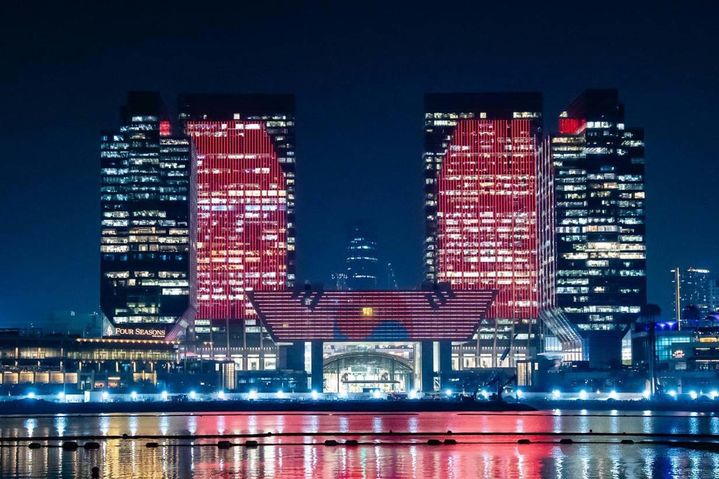 [아부다비=뉴시스] 최동준 기자 = 17일 아랍에미리트(UAE) 아부다비 글로벌 마켓(ADGM) 건물에 이재명 대통령 국민 방문에 대한 환영으로 태극기 조명이 점등되어 있다. (사진=대통령실 제공) 2025.11.18. [email protected] *재판매 및 DB 금지
