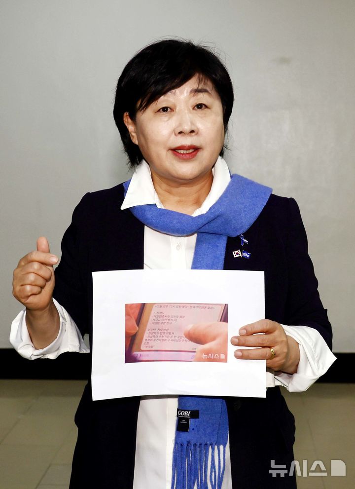 [서울=뉴시스] 조성봉 기자= 서영교 더불어민주당 의원이 19일 오전 서울 여의도 국회 법제사법위원회 법안심사제1소위원회 회의중 나와 김정욱 대한변호사협회장, 쿠팡 임원인 변호사 이모 씨와의 오찬회동 논란과 관련해 취재진에게 입장을 밝히고 있다.2025.11.19. [email protected]