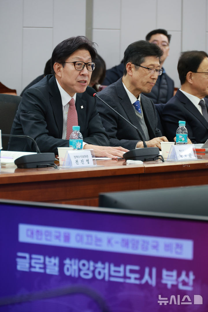 [서울=뉴시스] 고승민 기자 = 박형준 부산시장이 19일 서울 여의도 국회 의원회관에서 열린 '글로벌 해양허브도시 부산' 국회 릴레이 세미나에서 인사말을 하고 있다. 2025.11.19. [email protected]
