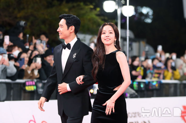 [서울=뉴시스] 김혜진 기자 = 배우 이제훈(왼쪽), 한지민이 19일 오후 서울 영등포구 KBS홀에서 열린 제46회 청룡영화상 레드카펫 행사에서 포즈를 취하고 있다. 2025.11.19. [email protected]